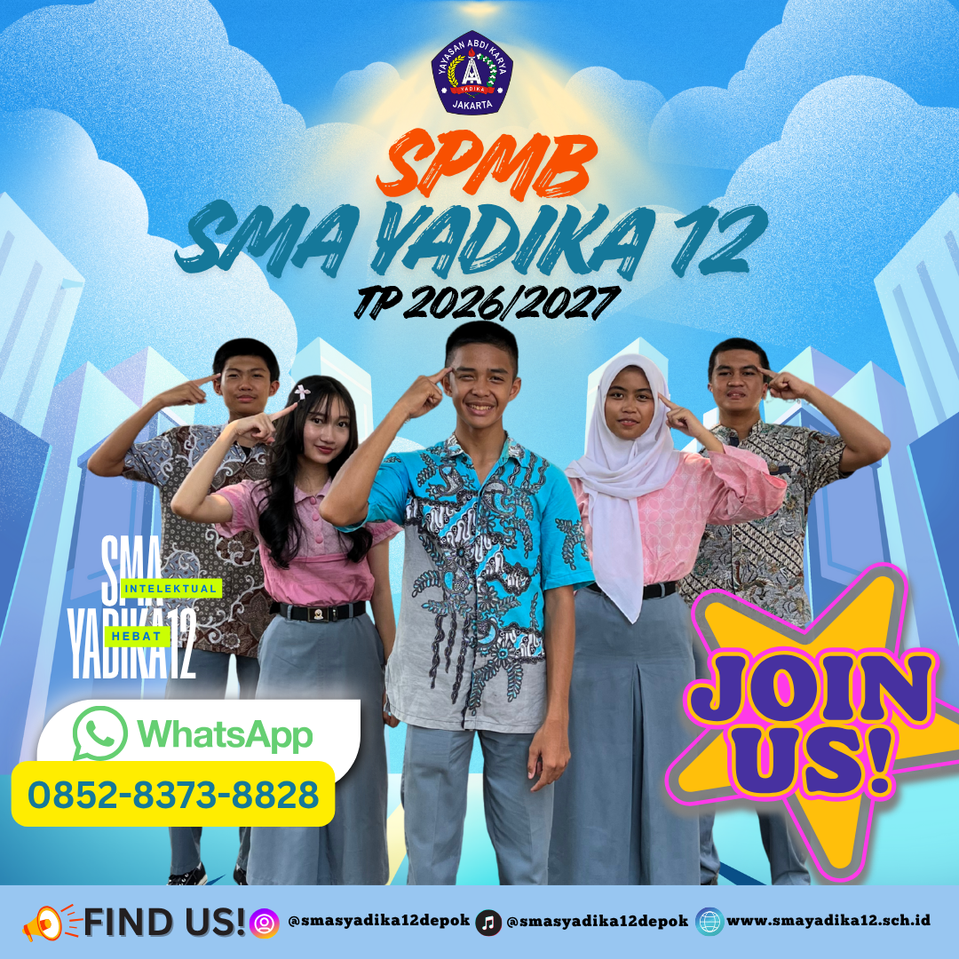 Bergabunglah bersama SMA Yadika 12, sekolah yang melahirkan intelektual hebat dan membekali siswa dengan kecerdasan akademik, karakter kuat, serta semangat berprestasi!